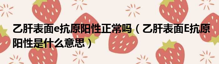 乙肝表面e抗原阳性正常吗(乙肝表面E抗原阳性是什么意思)