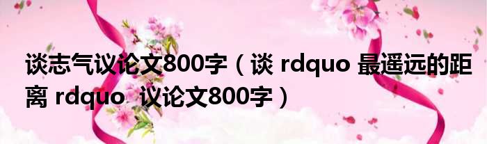 谈志气议论文800字(谈 rdquo 最遥远的距离 rdquo 议论文800字)