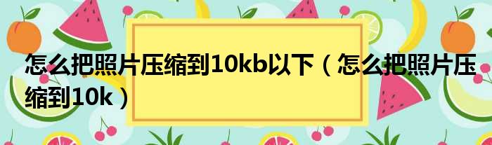 怎么把照片压缩到10kb以下(怎么把照片压缩到10k)