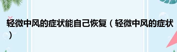 轻微中风的症状能自己恢复(轻微中风的症状)