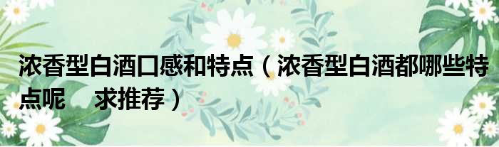浓香型白酒口感和特点(浓香型白酒都哪些特点呢 求推荐)