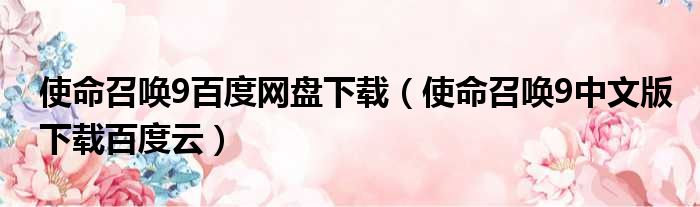使命召唤9百度网盘下载(使命召唤9中文版下载百度云)