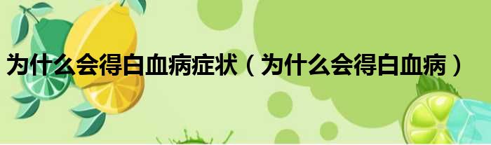 导读 大家好,乐天来为大家解答以下的问题,为什么会得白血病症状,为什么会得白血病很多人还不知道,现在让我们一起来看看吧!1、白血病,平时