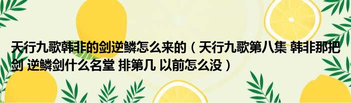 天行九歌韩非的剑逆鳞怎么来的(天行九歌第八集 韩非那把剑 逆鳞剑什么名堂 排第几 以前怎么没)