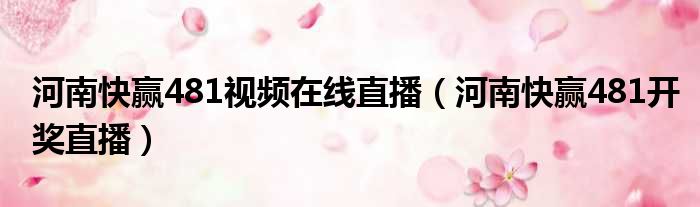 河南快赢481视频在线直播(河南快赢481开奖直播)
