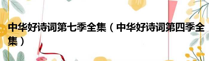 中华好诗词第七季全集(中华好诗词第四季全集)