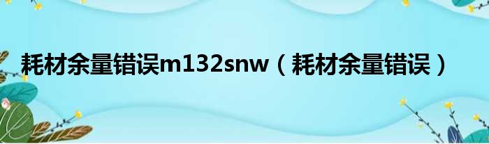 导读 大家好,今天小六子来为大家解答以下的问题,关于耗材余量错误m132snw,耗材余量错误这个很多人还不知道,现在让我们一起来看看吧!1、有可