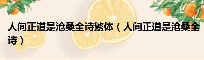 人间正道是沧桑全诗繁体(人间正道是沧桑全诗)