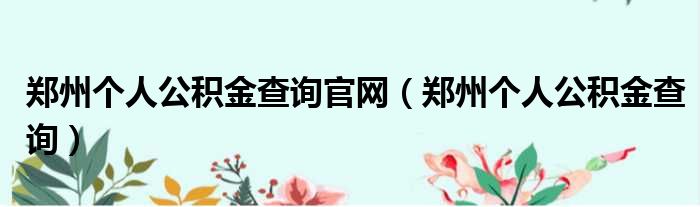 郑州个人公积金查询官网(郑州个人公积金查询)