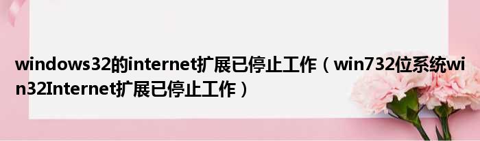 windows32的internet扩展已停止工作(win732位系统win32Internet扩展已停止工作)