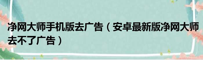 净网大师手机版去广告(安卓最新版净网大师去不了广告)