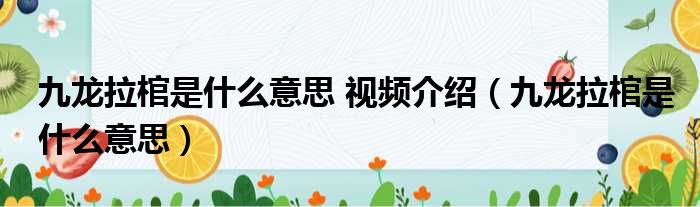 九龙拉棺是什么意思 视频介绍(九龙拉棺是什么意思)