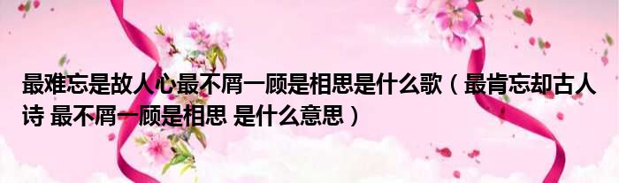 最难忘是故人心最不屑一顾是相思是什么歌(最肯忘却古人诗 最不屑一顾是相思 是什么意思)