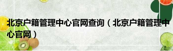 北京户籍管理中心官网查询(北京户籍管理中心官网)