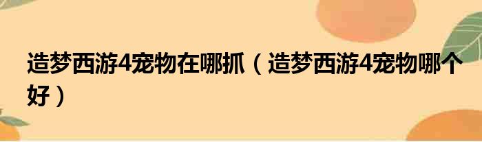 造梦西游4宠物在哪抓(造梦西游4宠物哪个好)
