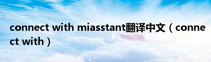导读 大家好,今天小六子来为大家解答以下的问题,关于connect with miasstant翻译中文,connect with这个很多人还不知道,现在让我们一起来看