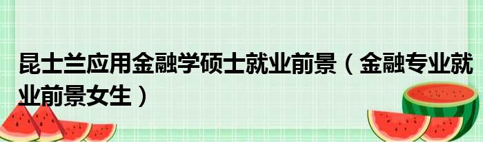 昆士兰应用金融学硕士就业前景(金融专业就业前景女生)