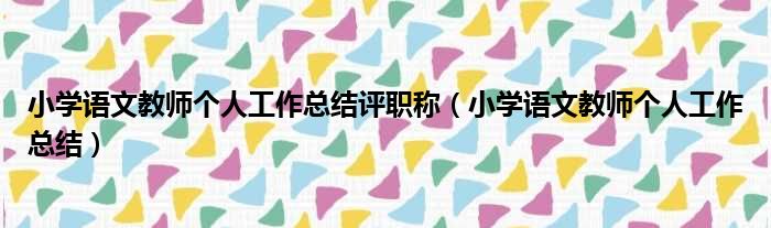 小学语文教师个人工作总结评职称(小学语文教师个人工作总结)