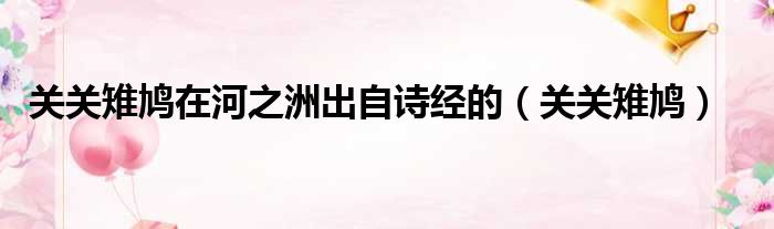 大家好,今天小六子来为大家解答以下的问题,关于关关雉鸠在河之洲出自诗经的,关关雉鸠这个很多人还不知道,现在让我们一起来看看吧!