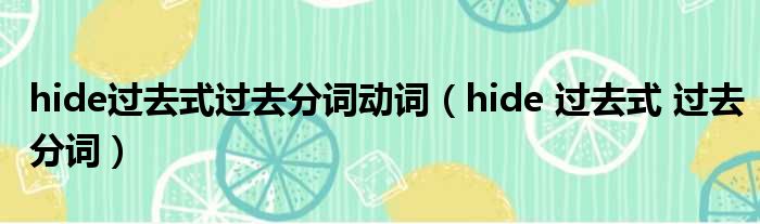 hide过去式过去分词动词(hide 过去式 过去分词)