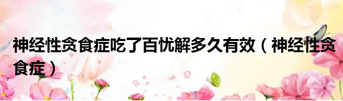 神经性贪食症吃了百忧解多久有效(神经性贪食症)