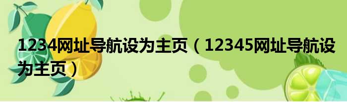 导读 大家好,今天小六子来为大家解答以下的问题,关于1234网址导航设为主页,12345网址导航设为主页这个很多人还不知道,现在让我们一起来看看吧