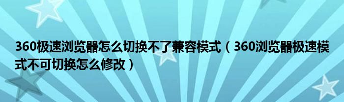 360极速浏览器怎么切换不了兼容模式(360浏览器极速模式不可切换怎么修改)