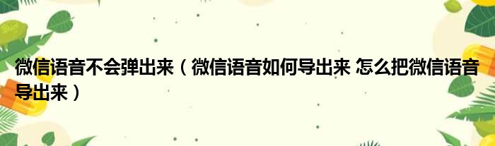 导读 大家好,今天小六子来为大家解答以下的问题,关于微信语音不会弹出来,微信语音如何导出来 怎么把微信语音导出来这个很多人还不知道,现在