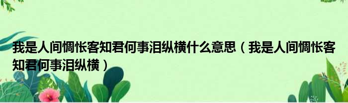 我是人间惆怅客知君何事泪纵横什么意思(我是人间惆怅客知君何事泪纵横)