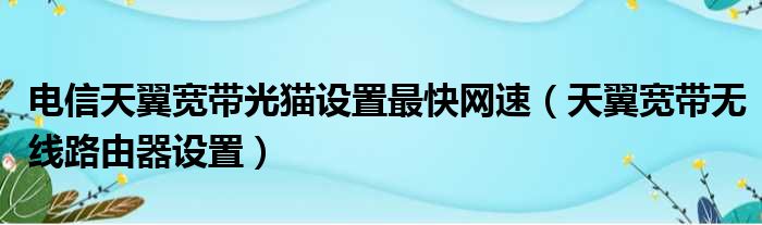 电信天翼宽带光猫设置最快网速(天翼宽带无线路由器设置)