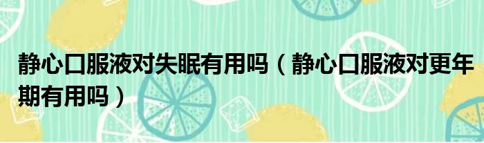 静心口服液对失眠有用吗(静心口服液对更年期有用吗)