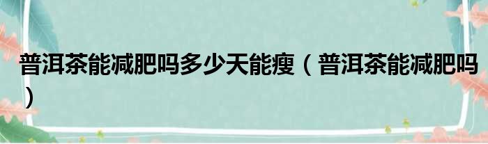 普洱茶能减肥吗多少天能瘦(普洱茶能减肥吗)