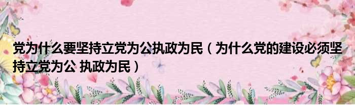 党为什么要坚持立党为公执政为民(为什么党的建设必须坚持立党为公 执政为民)
