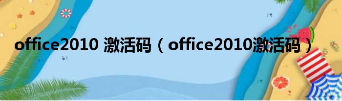 大家好,今天小六子来为大家解答以下的问题,关于office2010 激活码,office2010激活码这个很多人还不知道,现在让我们一起来看看吧!