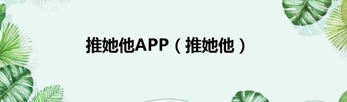 大家好,今天小六子来为大家解答以下的问题,关于推她他APP,推她他这个很多人还不知道,现在让我们一起来看看吧!