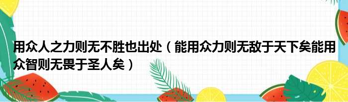 用众人之力则无不胜也出处(能用众力则无敌于天下矣能用众智则无畏于圣人矣)
