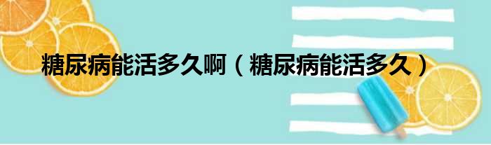 大家好,乐天来为大家解答以下的问题,糖尿病能活多久啊,糖尿病能活多久很多人还不知道,现在让我们一起来看看吧!