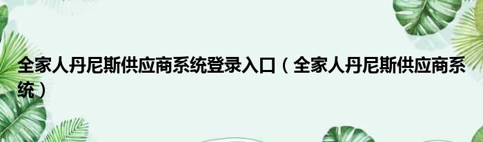全家人丹尼斯供应商系统登录入口(全家人丹尼斯供应商系统)