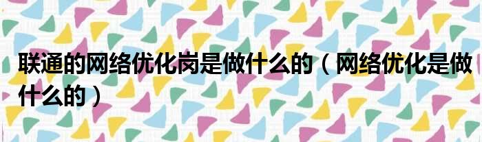 联通的网络优化岗是做什么的(网络优化是做什么的)