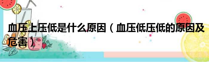 导读 大家好,今天小六子来为大家解答以下的问题,关于血压上压低是什么原因,血压低压低的原因及危害这个很多人还不知道,现在让我们一起来看看