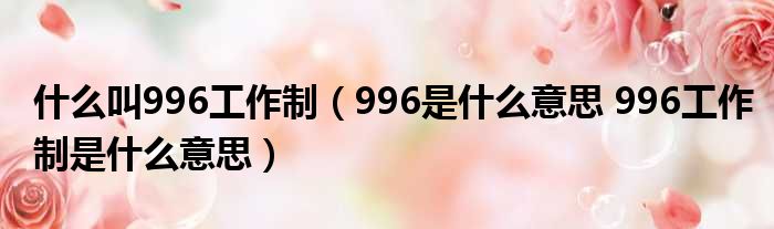 导读 大家好,今天小六子来为大家解答以下的问题,关于什么叫996工作制,996是什么意思 996工作制是什么意思这个很多人还不知道,现在让我们一起