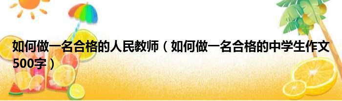 如何做一名合格的人民教师(如何做一名合格的中学生作文500字)