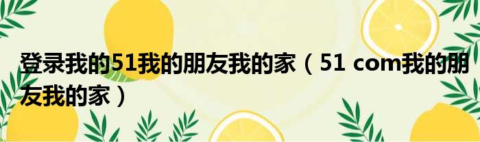 登录我的51我的朋友我的家(51 com我的朋友我的家)