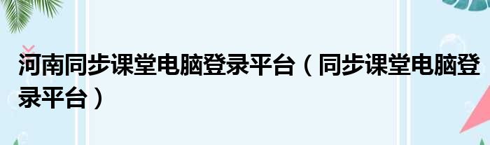 河南同步课堂电脑登录平台(同步课堂电脑登录平台)