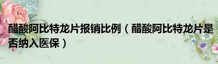 醋酸阿比特龙片报销比例(醋酸阿比特龙片是否纳入医保)