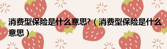 导读 大家好,今天小六子来为大家解答以下的问题,关于消费型保险是什么意思?,消费型保险是什么意思这个很多人还不知道,现在让我们一起来看看吧...