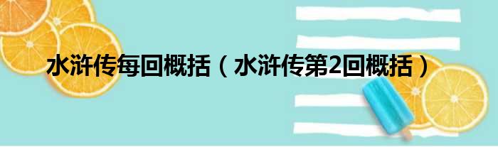 大家好,今天小六子来为大家解答以下的问题,关于水浒传每回概括,水浒传第2回概括这个很多人还不知道,现在让我们一起来看看吧!