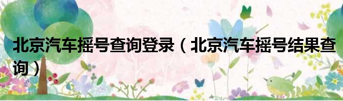 北京汽车摇号查询登录(北京汽车摇号结果查询)