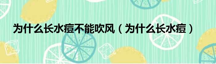导读 大家好,乐天来为大家解答以下的问题,为什么长水痘不能吹风,为什么长水痘很多人还不知道,现在让我们一起来看看吧!1、水痘具有很强的传...