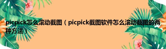 大家好,今天小六子来为大家解答以下的问题,关于picpick怎么滚动截图,picpick截图软件怎么滚动截图的两种方法这个很多人还不知道,现在让我们一起来看看吧!